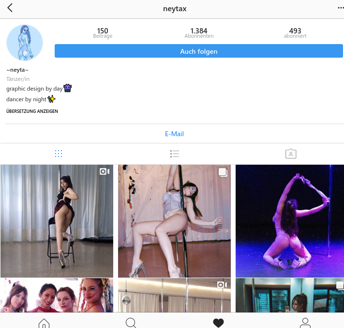 Auch Kristina (instagram @neytax), 24, ausgebildete Graphik Designerin und Poledancetrainerin in Island. Ich kenne sie von einigen High Heels Kursen (auch: Exotic Kurs) vom Poledance Studio als sie noch hier in Köln lebte. Ihr instagram feed: Videos wie sie an der Stange tanzt, belfies, Ganzkörper-Spiegelbilder in knappen Kostümen oder in Alltagskleidung. Ich schrieb ihr auf instagram und sendete ihr einigen Fragen zu, sie beantwortete alle.